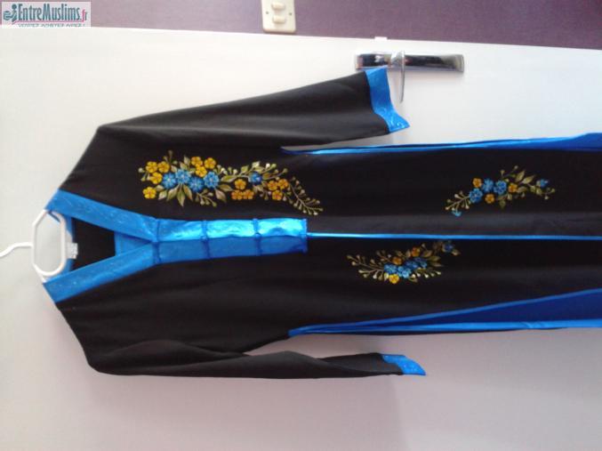 La robe est composé du haut manche longues et de son bas en satin, élastique à la taille.