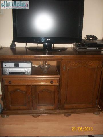 je vends ce meuble de TV en bois (robuste), bien entretenu et en bonne état. grande capacité de rangement (livre, cd...)