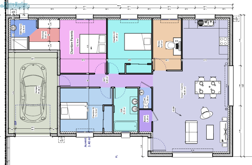 • 3 chambres (dont 1 suite parentale)