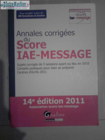 " Annales corrigés du score IAE Message". Livre destiné aux étudiants souhaitant préparer les concours d'entrée à certaines licences d'économie et gestion.