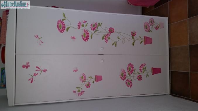 je vends une magnifique chambre de petite fille composé d 'un lit a tiroir avec matelas inclus, une armoire, un bureau et un biliotheque et le plafonnier.