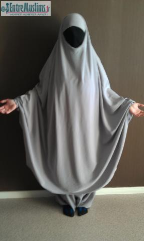 le jilbab a était porter plusieurs fois mais, il et en bon état aucune tache anormal sauf sur le bas du sarwel a cause du frottement contre le sol mais c'est inévitable. mais les salissure ne se voix pas énormément sinon aucun trou