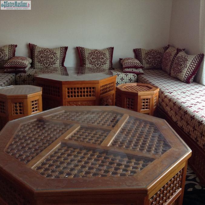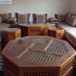 Je vend mon salon qui est composer du bois mesurant 10m,avec les 5matelas,12coussin,8 sorte de boudin,2grande table et 2taboure.