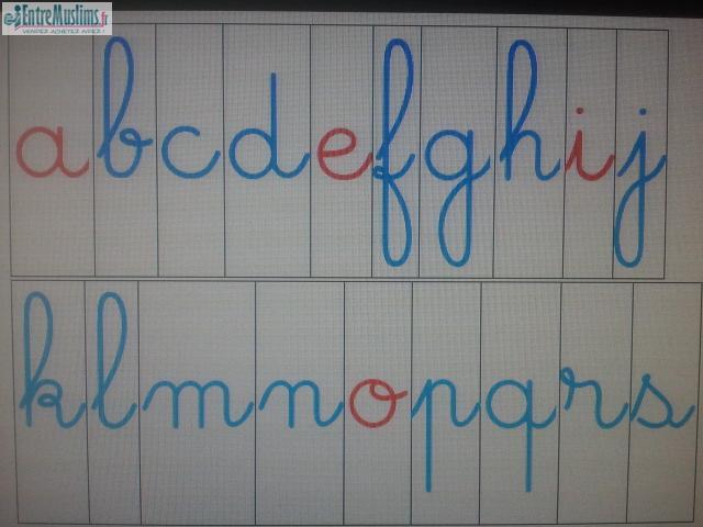 1) Lettres cursive (1ère photos) : Voyelle rouge et consonne bleu 11€