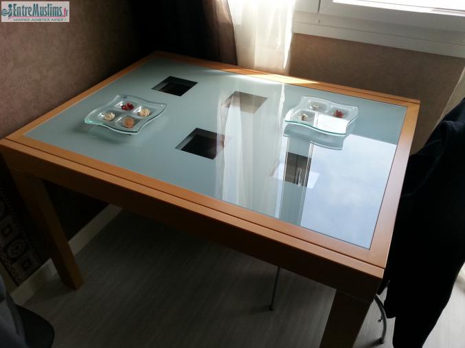 Bonjour je vend cette tres jolie table en bois et verre pour salle a manger