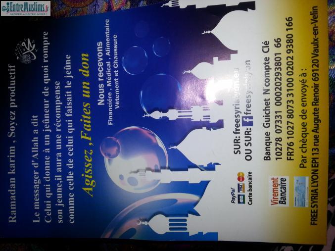 NOUS AVONS BESOIN DE VOTRE GENEROSITE EN CE MOIS SACRE DU RAMADHAN.