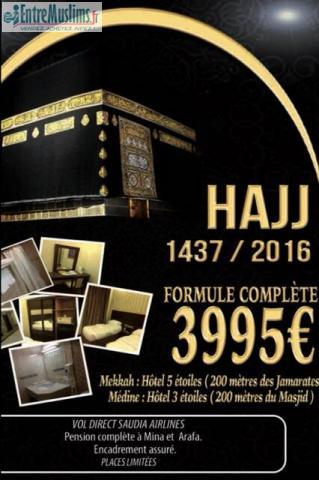 notre agence de voyage vous propose la meilleure formule du moment un Hajj à 3995€ départ le 5 septembre de Lyon, retour le 19 septembre 2016. vol direct Saudia Airlines. Hôtel 5* à Azazia à 200 m de Jamarats. Médine 3* 200 m.