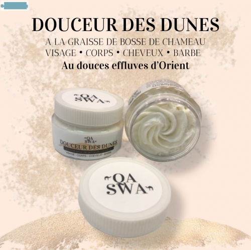 QASWA l’a déclinée en douce et onctueuse chantilly de graisse de bosse de chameau, très facile d’application et pleine de bienfaits ! Elles sont disponibles en 3 versions :
