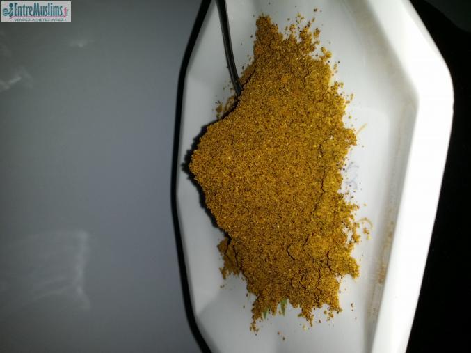 mélange d'épices du Maroc appelé MROUZIA confondu avec le ras ul hanout connu, il est utilisé dans la préparation des poulets aux olives pour les mariages. Moulu par mes soins, mélange d'épices de très bonne qualité, le produit et vendu à partir de 200 gr. 7€.
