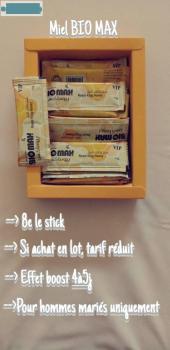Salem 3aleykoum je vend du miel bio max. Il regroupe plusieurs bienfaits pour la santé comme les défenses immunitaire, améliore la circulation du sang, la mémoire, lutte contre le cholosterol, améliore la digestion. Il a un rôle important dans les rapports intimes. Il lutte contre la fertilité, améliore le spermatozoïde etc...