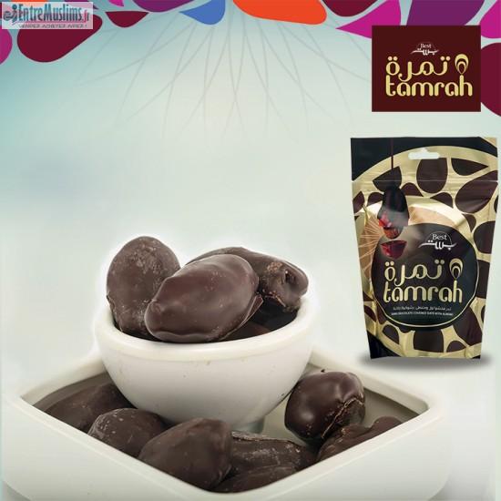 Succombez au gout irrésistible de la datte enrobée de chocolat noir avec son coeur à l'amande.