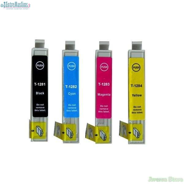 Lot de 4 cartouches (noir + 3 couleurs) neuf sous blister non-OEM Epson T1281 T1282 T1283 T1284 pour :