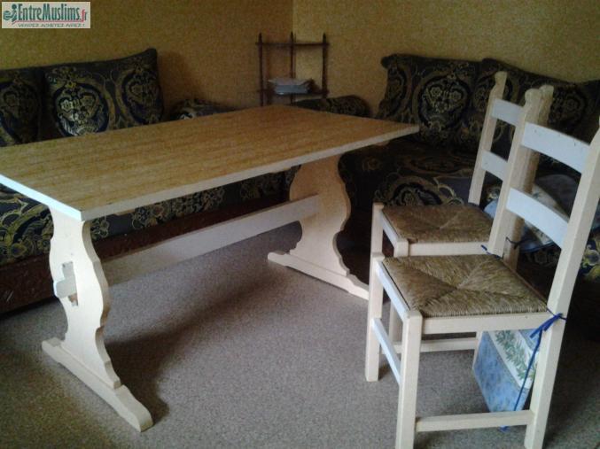 Table plus 4 chaines en paille bon etat, en bois de bonne qualité.
