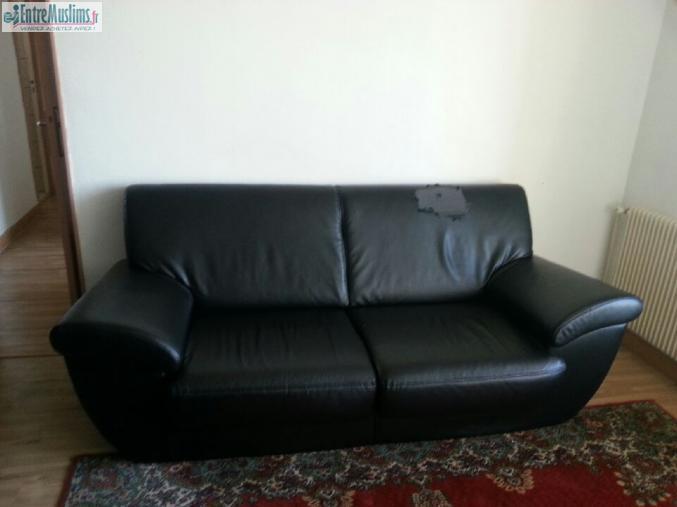 Donne canapé en bonne état à par la déchirure sur le haut mès qui peu être cacher par un plaid ou autre et l assise est très confortable