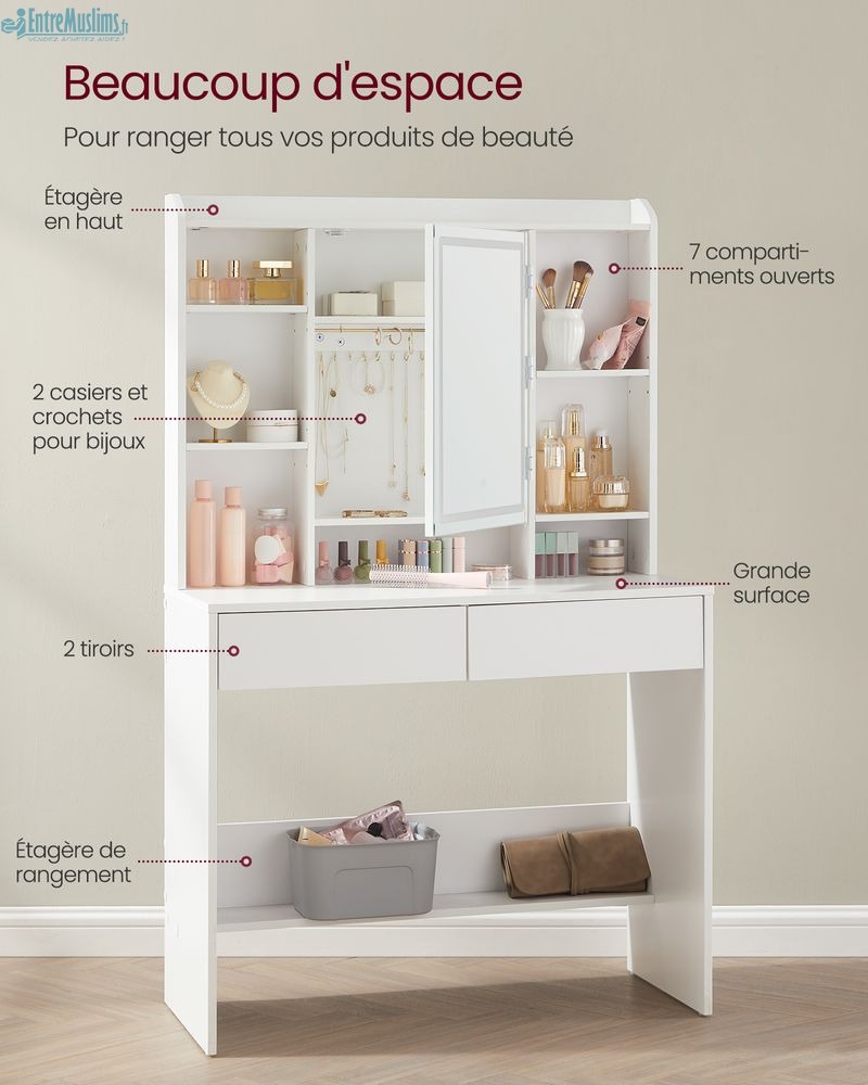 7 compartiments ouverts et 2 grands tiroirs
