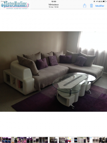 Je vend l'ensemble à seulement 400euro canapé d'angle buffet bas et table basse ainsi que l'armoire