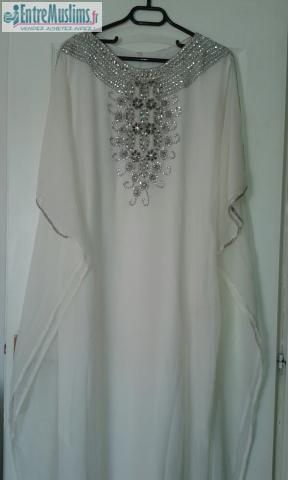 Magnifique robe Dubaï. Taille unique, se cintre derriere le dos mais non apparent. N'hesitez pas à me contacter