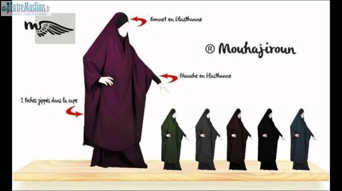 jilbab 2 pieces coupe Mouhajiroun manche et bonnet en elasthane