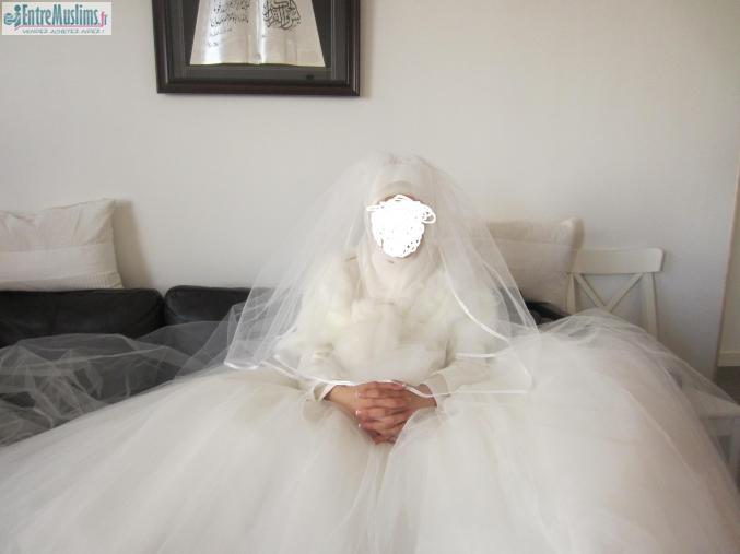 As salem waleykoum je loue cette magnifique robe de mariee avec le cerceau le hijab blanc et sont bandeau en satin le bolero et la fourrure cette robe de mariee je l'ai achetter 1700€