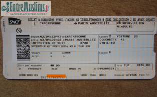 Je vend un billet de train départ le jeudi 07 aout à 18h10 (Lyon => Carcassonne) Possibilité de remise en main propre le jour même a Lyon Part Dieu