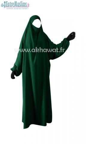 Salam alaykunna les soeurs je vends un jilbab el bassira microfibre léger, 1pièce avec manches, de couleur vert émeraude foncé.